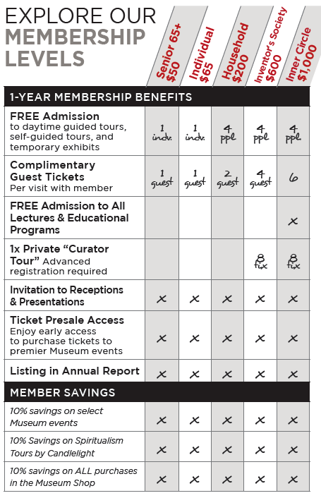 As a non-profit organization, your membership is entirely tax-deductible. Your support enables us to continue to evolve by creating new content, new exhibits, and new programs, as well as to restore and preserve this historic site for generations.